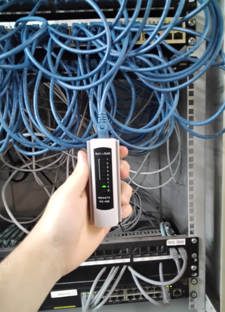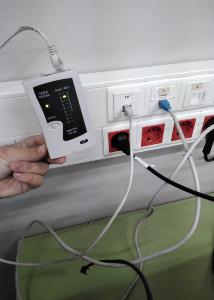 Per fer la revisió del punt de xarxa el que vam fer va ser agafar un tester que és l’aparat que es veu a la foto, i hem d’agafar els dos extrems de la connexió, la connexió femella que surt a la nostra taula li vam connectar un cable des de la connexió femella fins al tester, i l’altre extrem vam connectar directament el latiguillo que estava connectat al switch de classe, i per saber si funciona bé totes el led han d’anar-se’n activen una darrera d’altre, en cas que un led no és sanguí significarà que, aquell extrem no aquesta ben feta o sa trencat.
