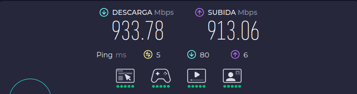 I també farem una prova de connexió per veure si els ports que funcionen tenen un bon rendiment, i tots sobrepassen els 900 Mbps.