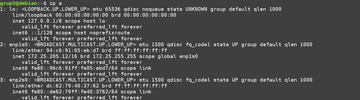 Per comprovar que les dues tarjetes estan actives usarem la comanda ip a, on vuerem que tenim dues tarjetes la principal de la placa base enp1s0 y enp2s0