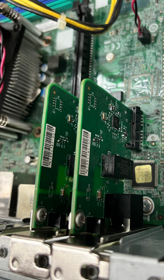 Una vegada trobada els ports pcie 1x únicament ens quedarà connectar les tajetes de xarxa, per connectables és posar-les en el connector i pressionar en els dos extrems de la targeta per fer una bona instal·lació sense risc que es trenqui.
