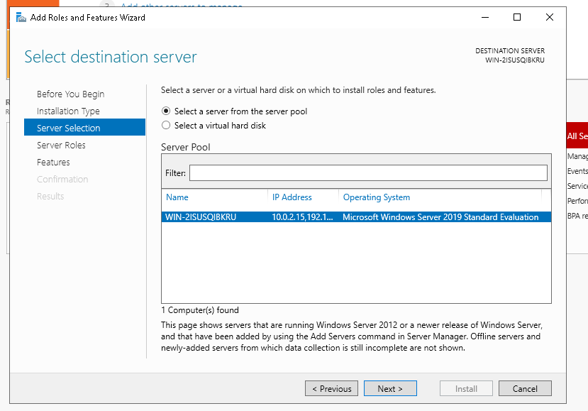 En aquesta pestanya seleccionarem el servidor el qual volen fer la instal·lació.