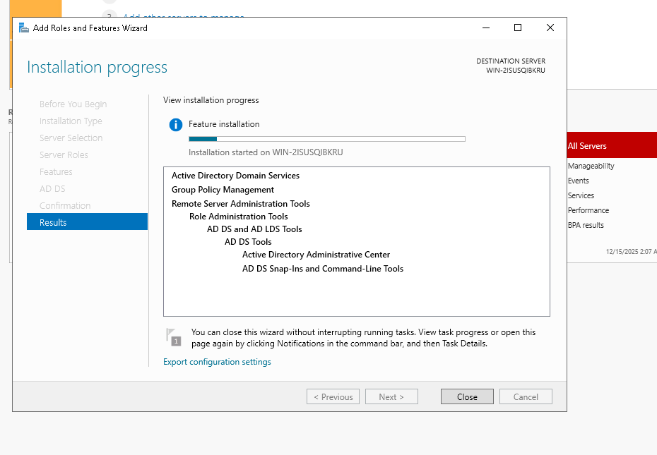 Activació del servei de Directory en W2k19
